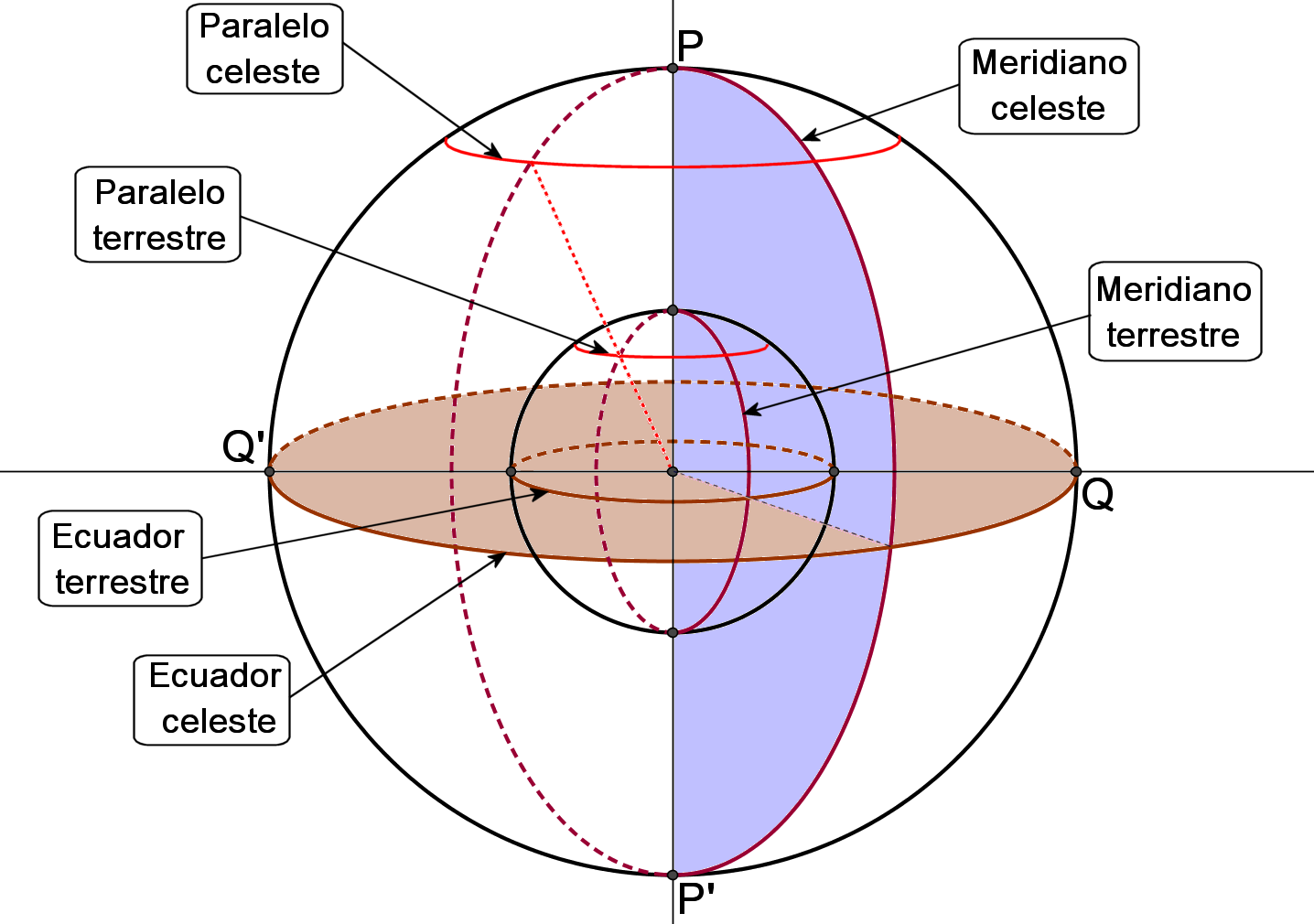 - P y P' ≡ Polos de la esfera celeste