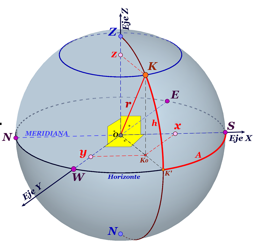 - EJE Z: Dirección del Eje del mundo y positivo hacia el polo norte celeste