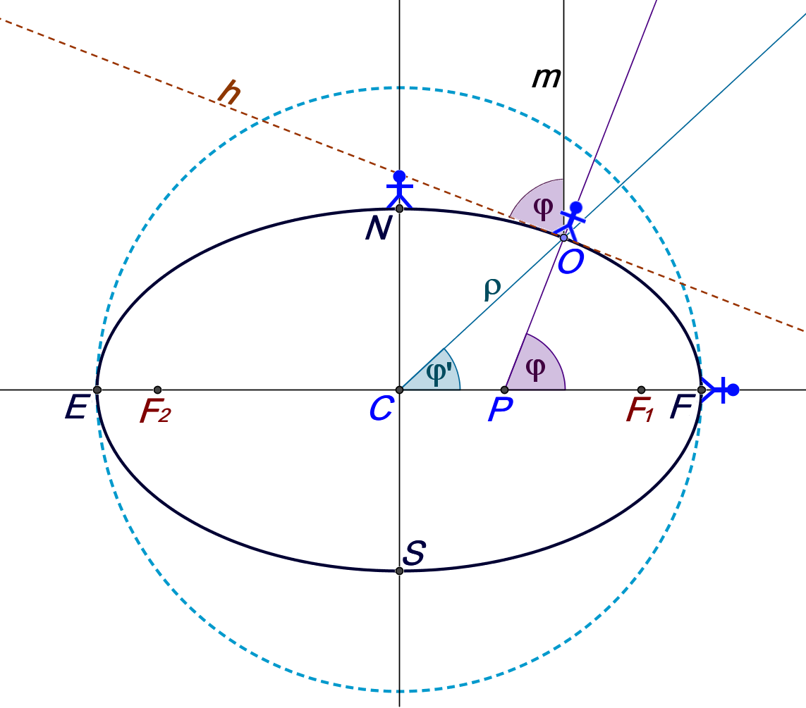 - En el caso de la esfera, el achatamiento es 0 y los dos focos coincidirían con el centro, en cuyo caso φ = φ'